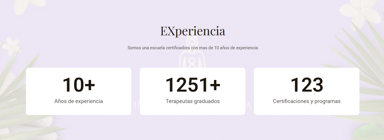 | Somos una institución de educación, con modalidad en línea y presencial, fundada en 2001. Ofrecemos a personas de todas las edades certificaciones y talleres en terapias físicas y alternativas. Durante más de 20 años hemos capacitado a numerosos terapeutas holísticos y hemos acercado a millones de personas de habla hispana enseñanzas espirituales de diversas tradiciones, de forma abierta e inclusiva. | ||